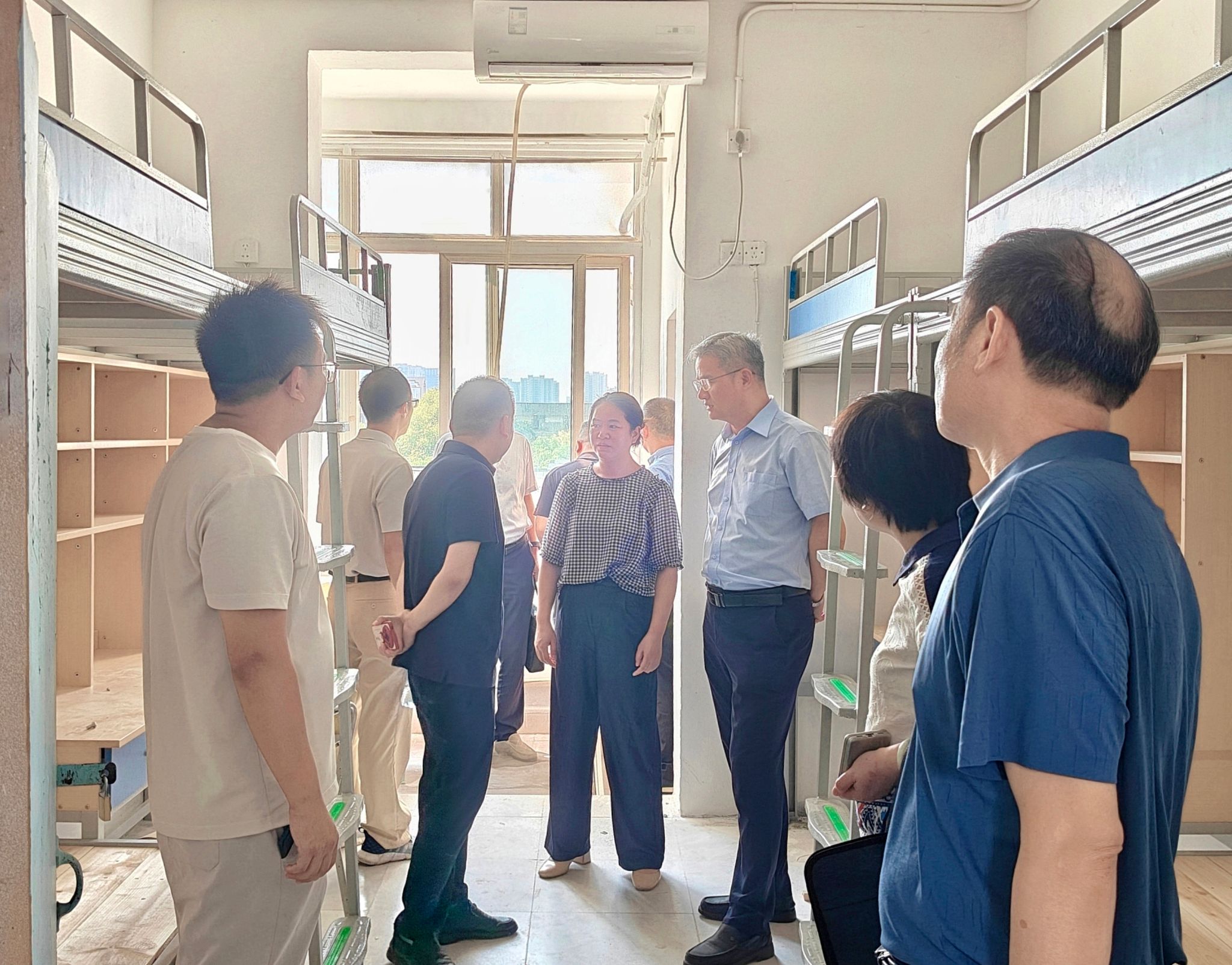 在宿舍改造现场,花严红、孙江云重点关注施工质量和工程管理,仔细察看了宿舍床具安装、水电改造等情况,要求时刻把好流程关、控好细节关,及时做好施工垃圾清理和宿舍卫生清洁等收尾工作,为学生营造安全、舒适的居住环境。在校园食堂和超市,花严红、孙江云重点围绕食品安全、卫生清洁、商品供应和价格稳定开展细致检查,要求食堂和后勤管理部门严格把控食品加工全流程,规范操作,杜绝食品安全隐患,为师生推出更多实惠而暖心的餐食。在教学楼,花严红、孙江云对新生教室的准备情况进行了检查,要求教务部门与后勤部门密切配合,及时解决教室存在的问题,确保新学期第一课顺利开展。